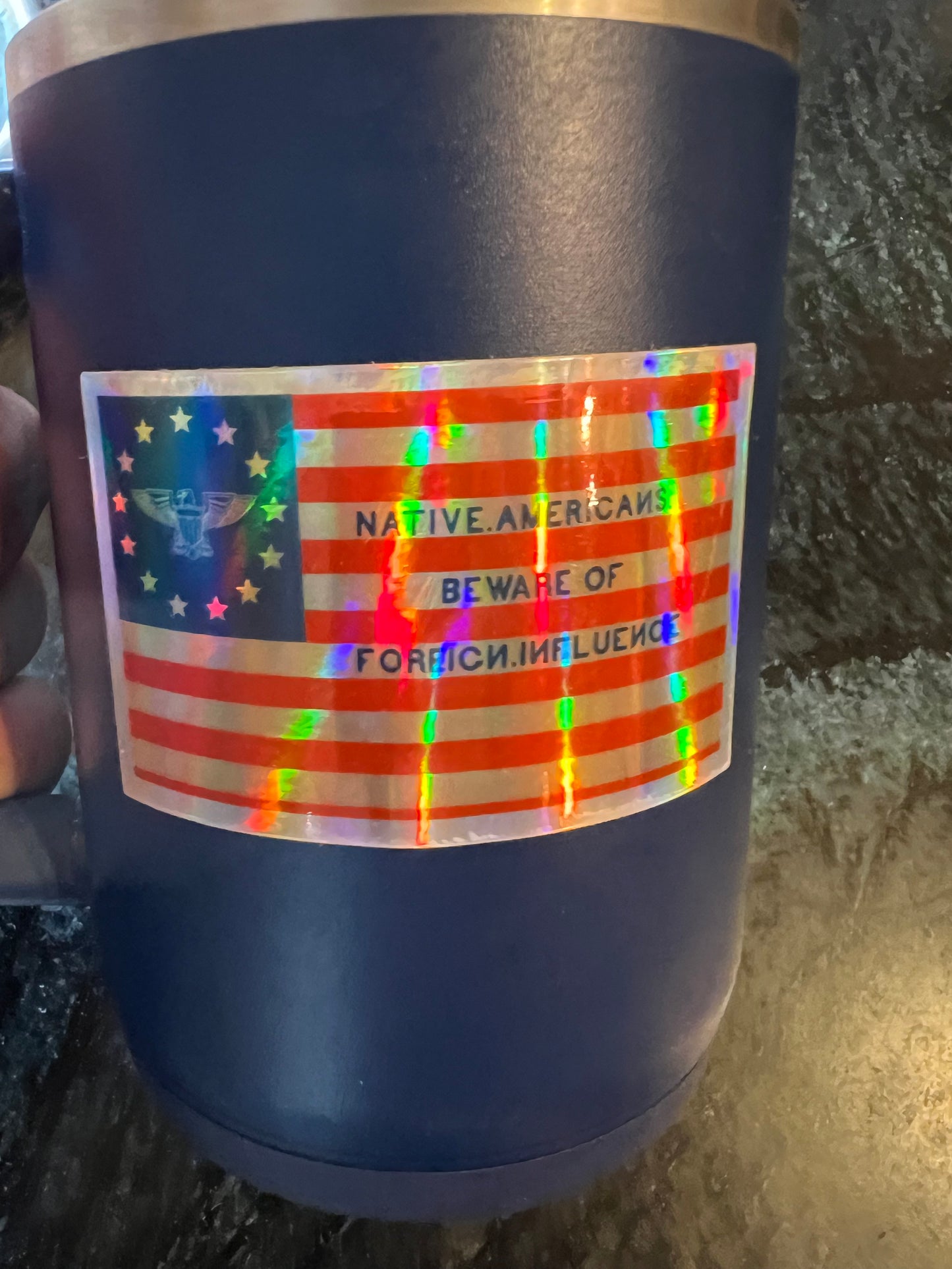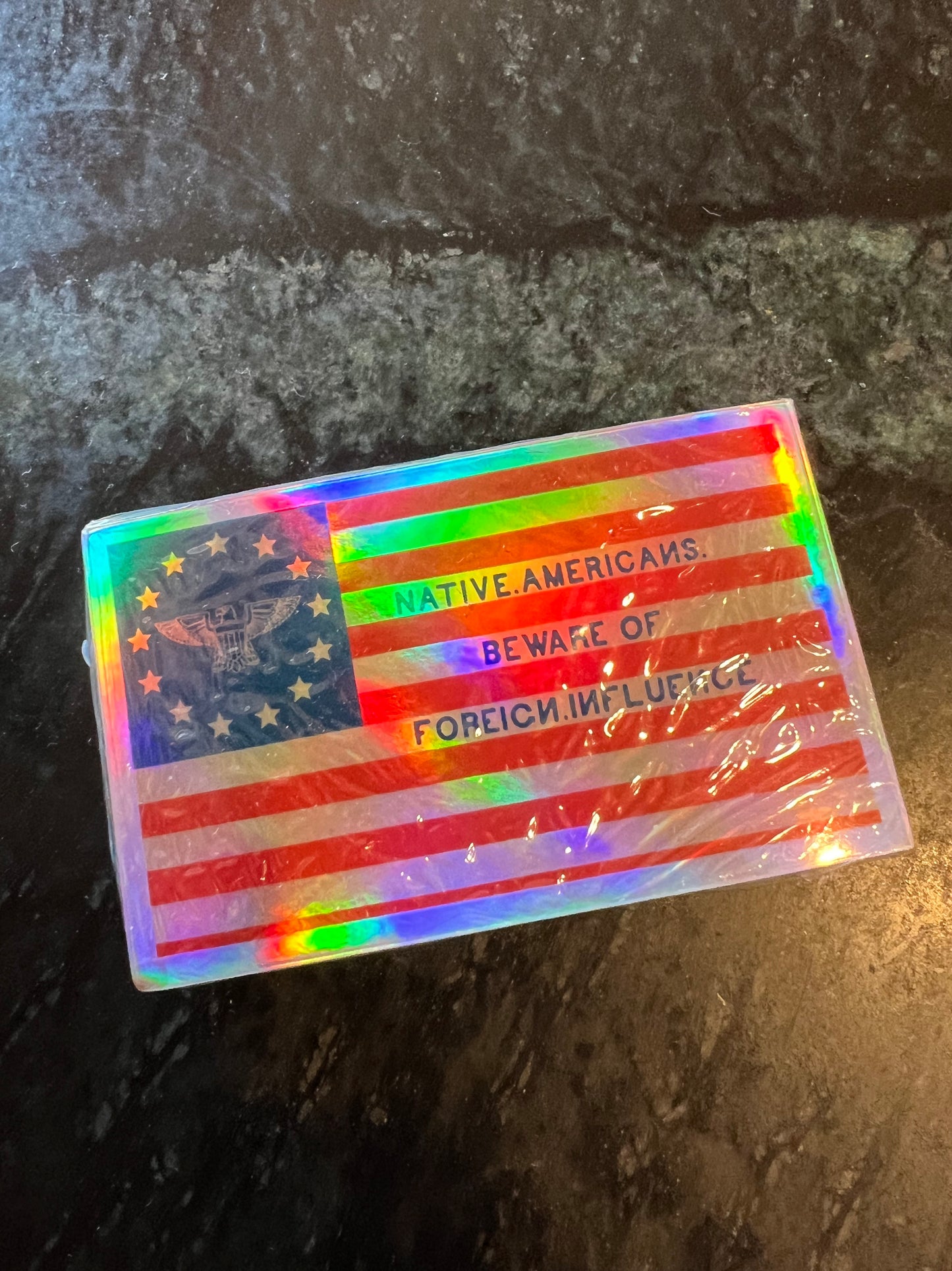 Updated Know Nothing flag, holographic. Bill the Butcher would be proud! 2x3 inch, USA made