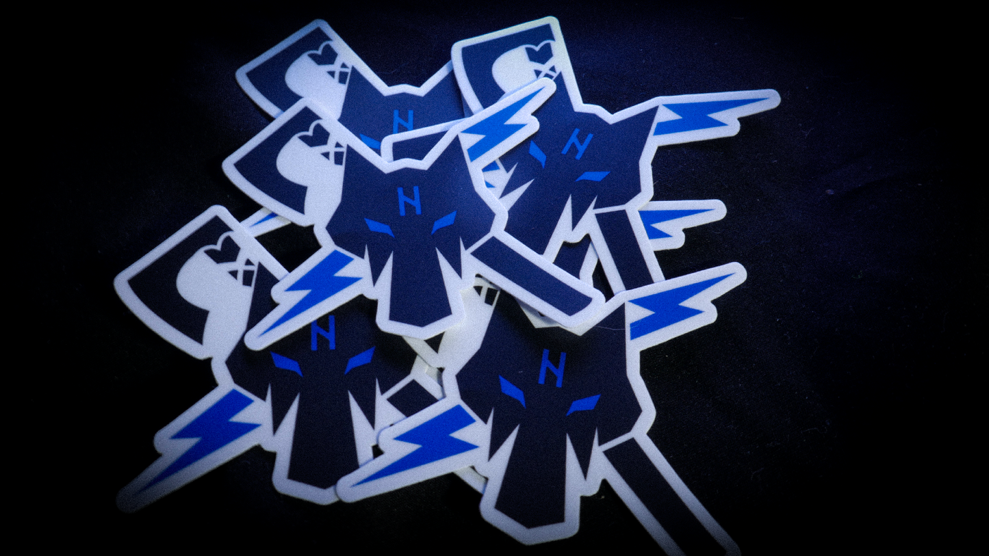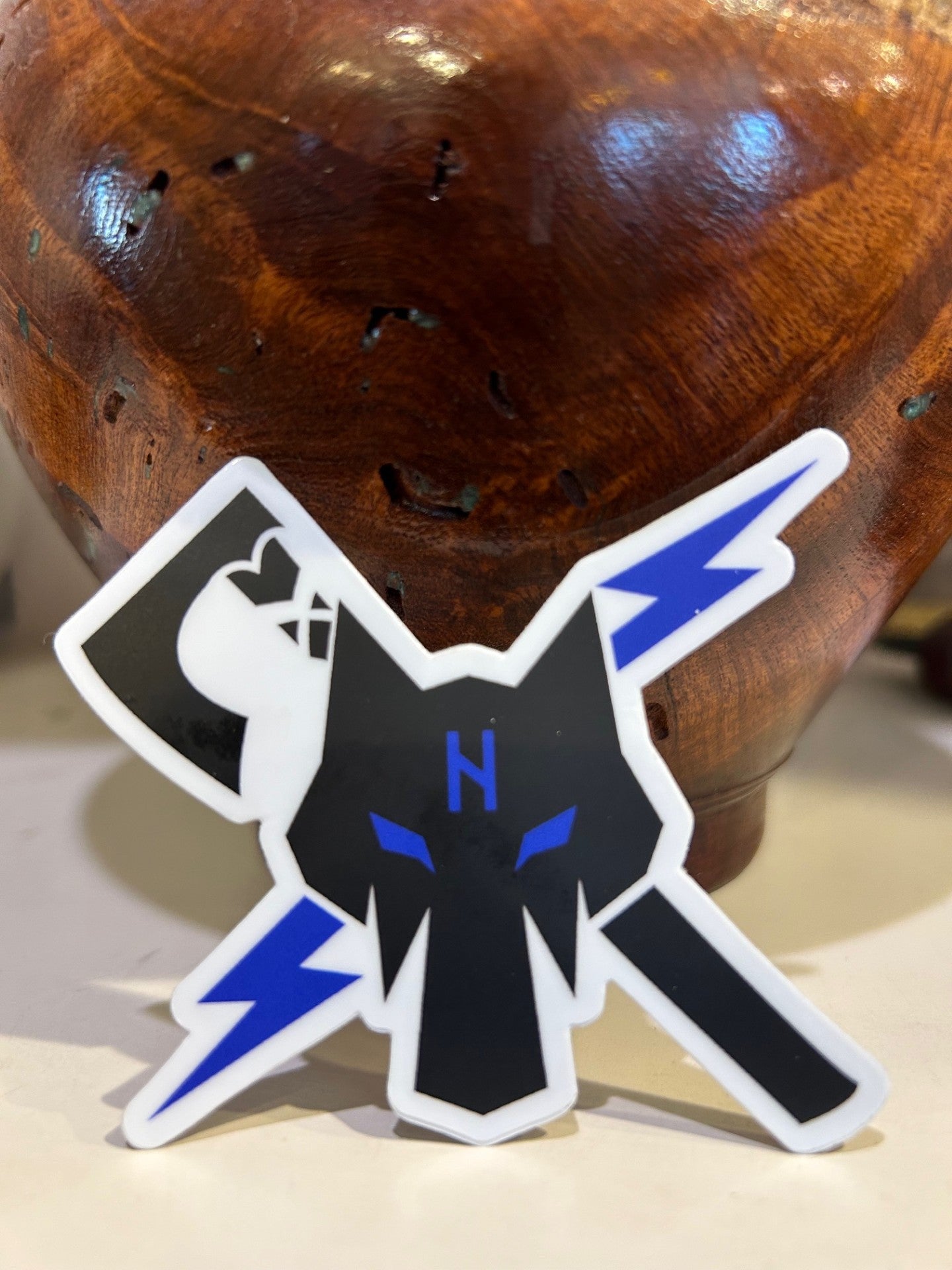 A die cut wolf lodge symbol sticker in full color.